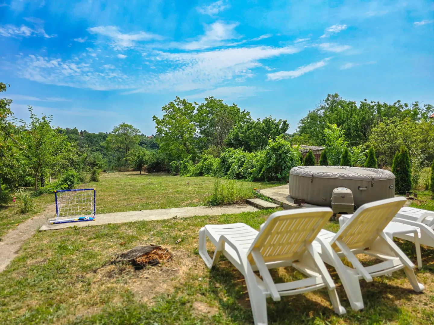 Šta vas očekuje: Enterijer: 3 prostrane spavaće sobe i potpuno opremljena kuhinja za pripremu omiljenih obroka. Uživanje na otvorenom: Veliko, ograđeno dvorište sa sezonskim bazenom i đakuzijem za maksimalno opuštanje. Zona za odmor: Udobne ležaljke, suncobrani i roštilj za savršene letnje večeri sa porodicom ili prijateljima. Dodatne pogodnosti: Besplatan WiFi i siguran parking u okviru objekta.